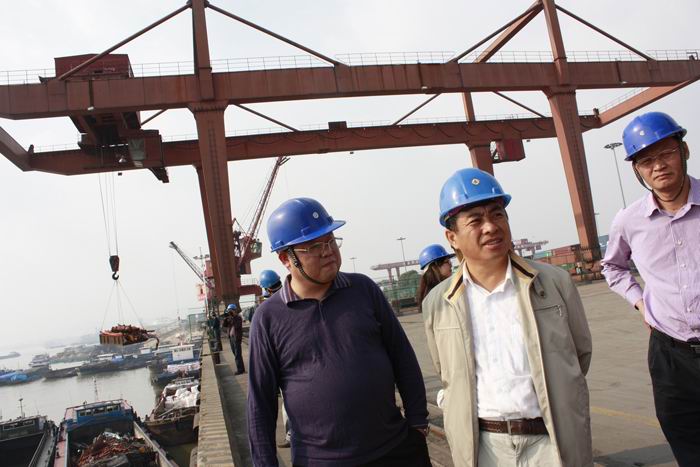 根據(jù)國(guó)家交通運(yùn)輸部安全隱患排查交叉檢查的安排,9月23日下午,由海南省交通廳副廳長(zhǎng)朱亞光任組長(zhǎng)的海南省交通運(yùn)輸廳安全隱患排查治理檢查組一行,在湖南省交通運(yùn)輸廳安全監(jiān)督處處長(zhǎng)羅可、長(zhǎng)沙市交通運(yùn)輸局副局長(zhǎng)席超波的陪同下,就交通運(yùn)輸安全隱患排查治理工作來(lái)長(zhǎng)沙新港進(jìn)行檢查。湖南長(zhǎng)沙新港有限責(zé)任公司黨委副書(shū)記、董事、副總經(jīng)理唐忠良向檢查組匯報(bào)了公司安全工作情況 |