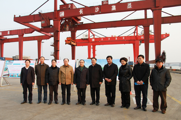2月10日下午,交通運輸部黨組副書記、副部長翁孟勇一行,在省交通運輸廳黨組書記、廳長賀仁雨,長沙市委副書記、市長張劍飛,市政府副市長何寄華,市政府秘書長、辦公廳主任唐志浩,市政府副秘書長嚴鳳枝,市交通運輸局黨委書記朱東鐵,局長劉明理,副局長姚仲權、陳湘,開福區(qū)區(qū)委書記張迎春,區(qū)長凌勤杰等領導陪同下,來到長沙新港考察調研。湖南長沙新港有限責任公司董事長、三期工程建設指揮部指揮長石道國,董事、常務副總經理唐忠良,董事趙赤書,副總經理張韜,長沙集星集裝箱碼頭有限公司副總經理辛華,總經理助理周勇接待。 在長沙新港集裝箱碼頭上,三期工程建設指揮部副指揮長、新港公司副總經理張韜介紹了長沙新港一、二期工程運營情況,匯報了三期工程建設規(guī)模及建設情況。翁孟勇副部長強調:長沙新港變化一次比一次大,當前要借助湖南加大水運發(fā)展力度的有利契機,加快樞紐、港口和湘江2000噸級航道提升建設,更好地服務經濟社會和航運的持續(xù)發(fā)展。 |