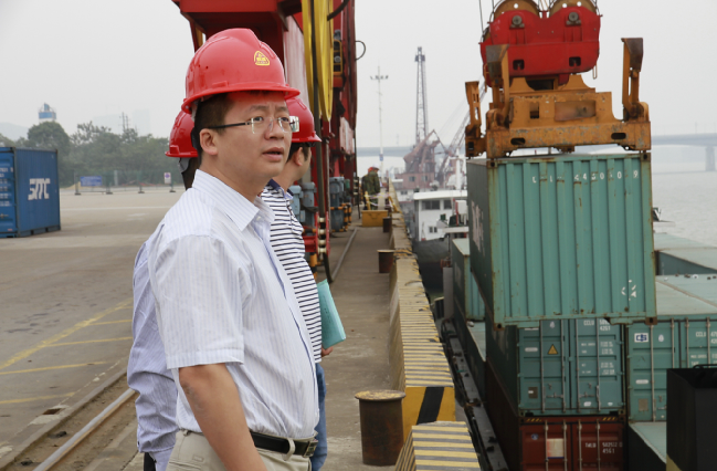 會(huì)前,調(diào)研領(lǐng)導(dǎo)對(duì)長(zhǎng)沙港集裝箱碼頭及件雜散貨碼頭進(jìn)行了實(shí)地考察。