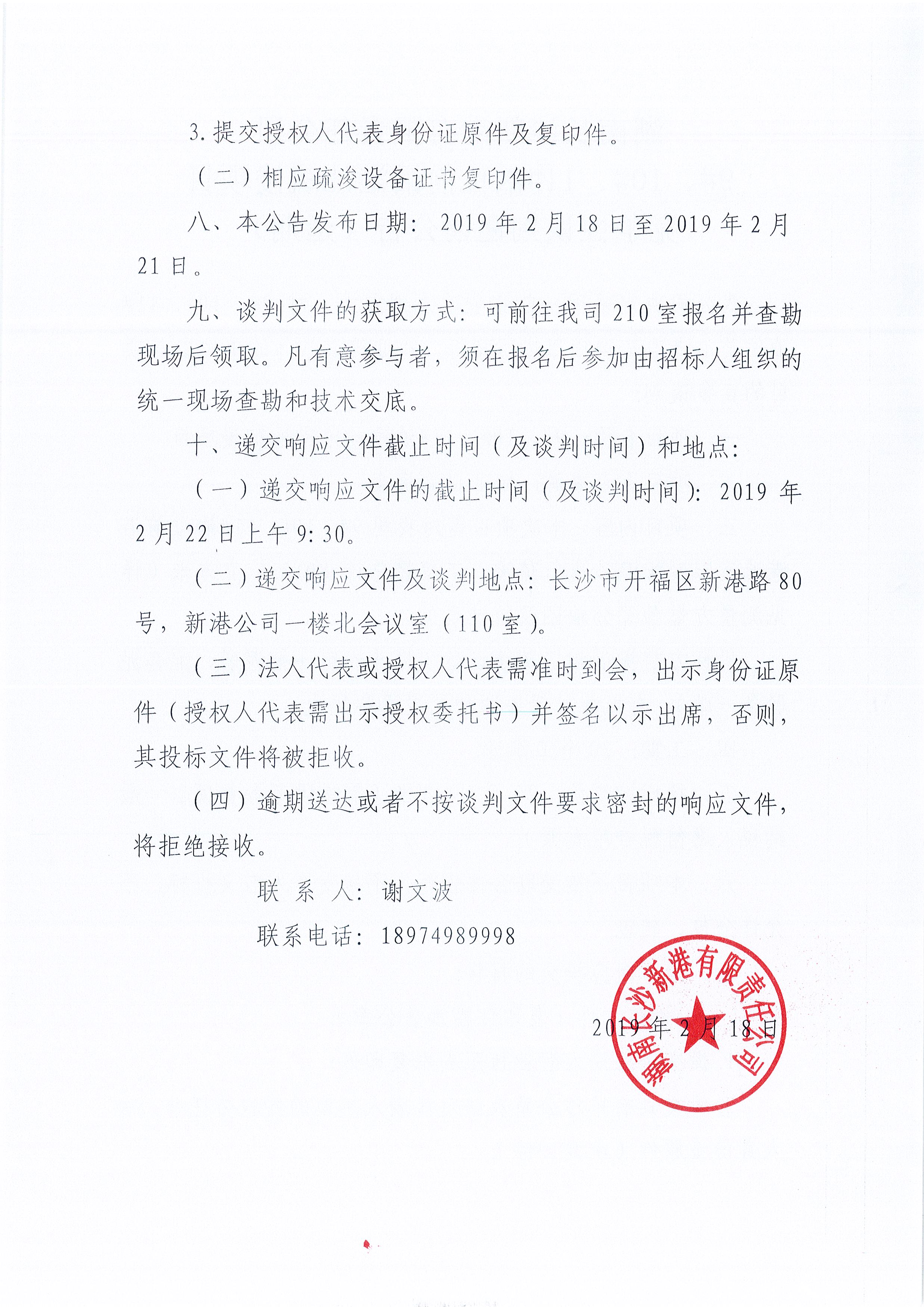 湖南長沙新港有限責任公司 9#、10#、11#泊位前沿港池疏浚項目競爭性談判邀請公告(延期)