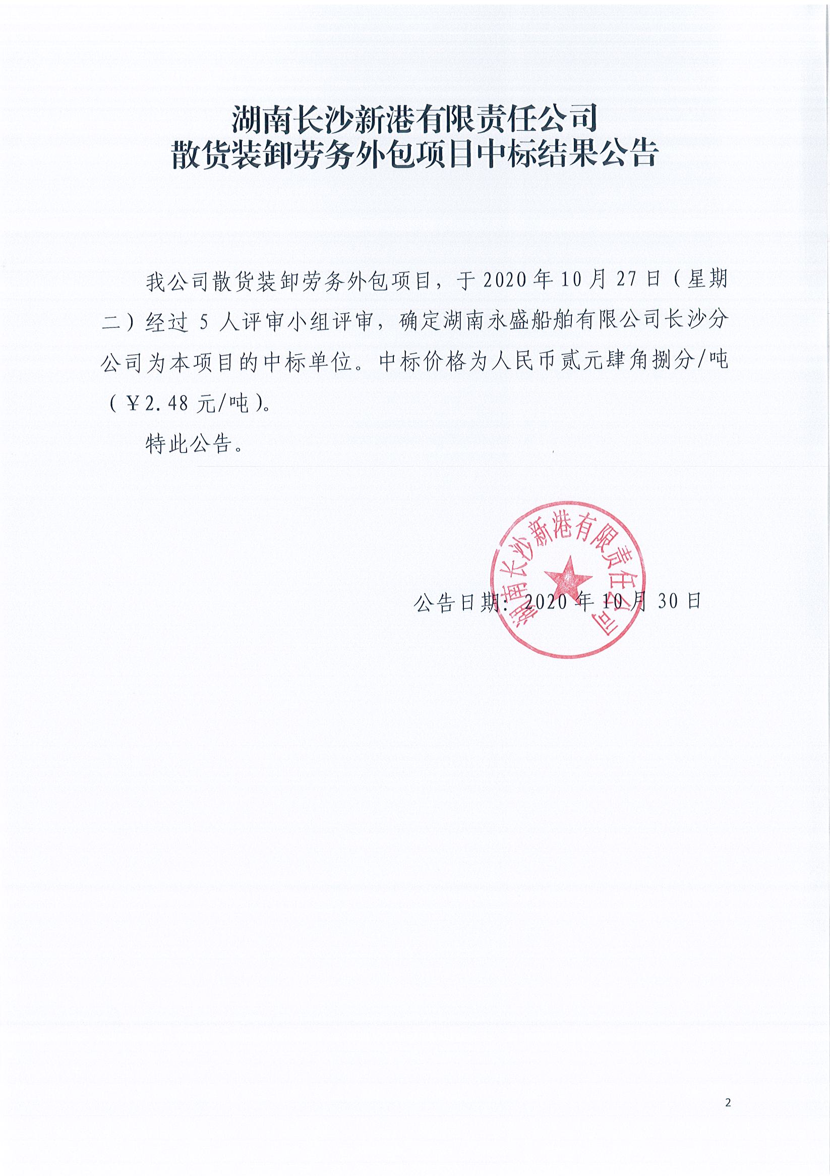 散貨裝卸勞務(wù)外包項目中標(biāo)結(jié)果公告