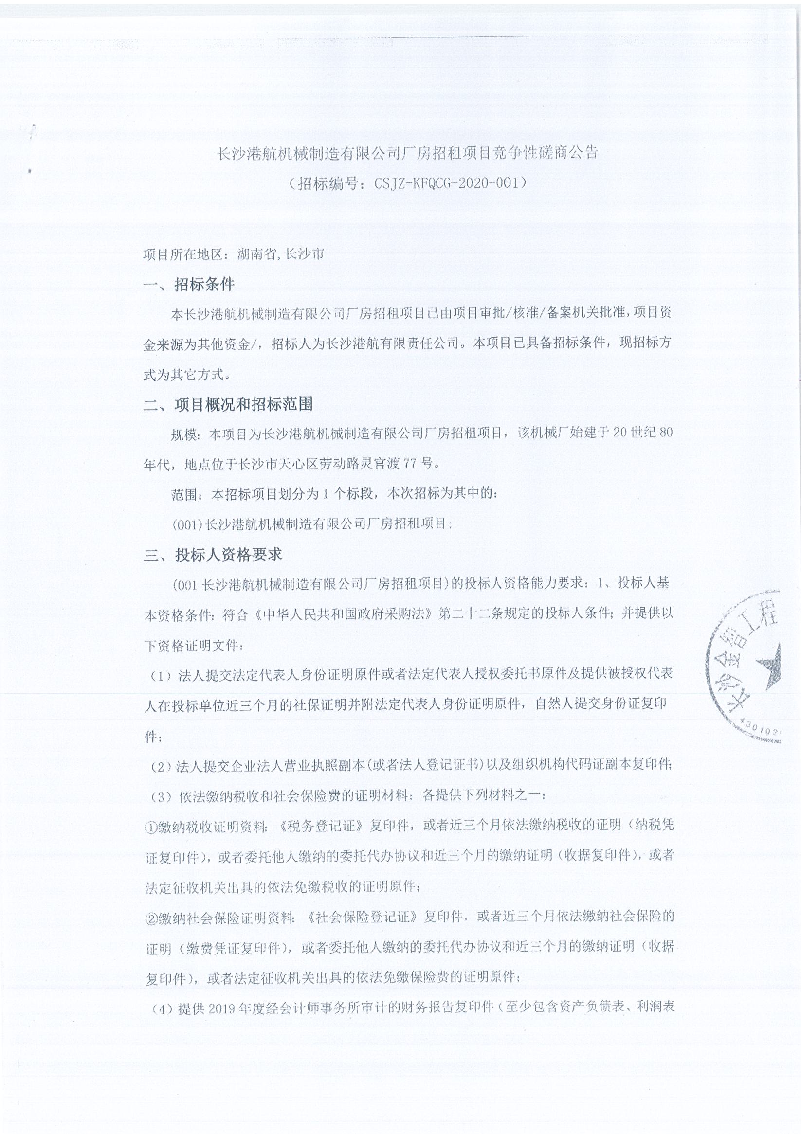 長沙港航機(jī)械制造有限公司廠房招租項(xiàng)目競(jìng)爭(zhēng)性磋商公告